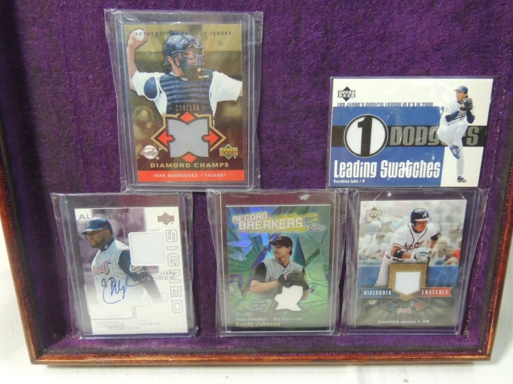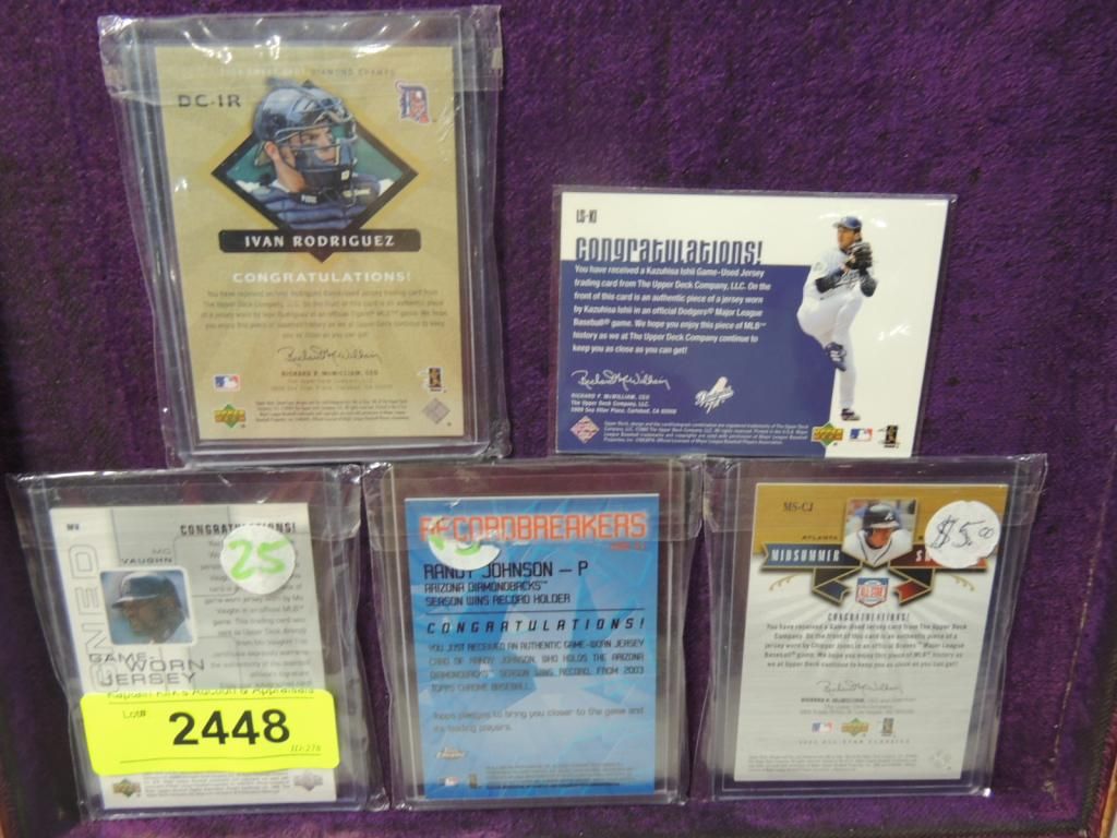 CHIPPER JONES, RANDY JOHNSON, IVAN RODRIGUEZ, MC VAUGHN. GOOD CONDITION. IN SLEEVE. TRADING CARDS. COLLECTIBLE. AS SHOWN. SEE PHOTO FOR MORE DETAILS.