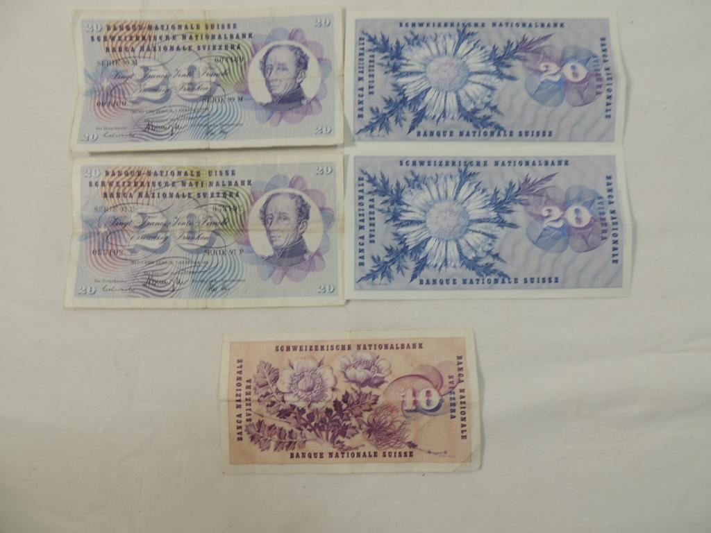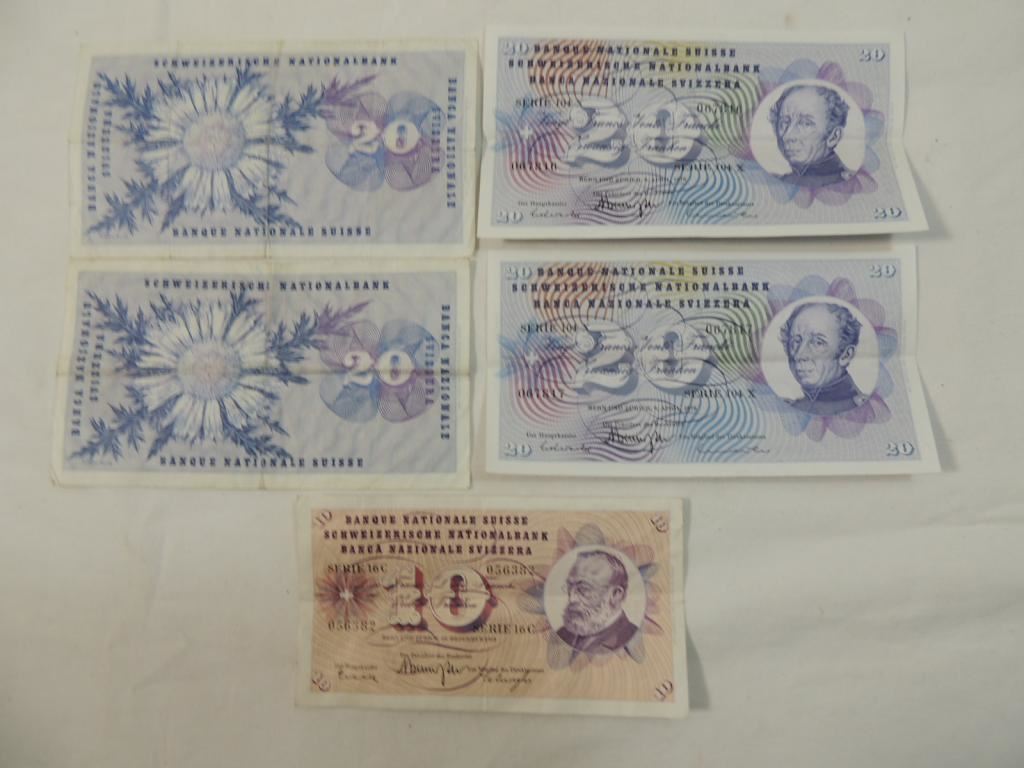 4 20 FRANCS AND 1 10 FRANCS FOREIGN COINS, DECORATIVE, VINTAGE AS SHOWN SEE PHOTO FOR MORE DETAILS.