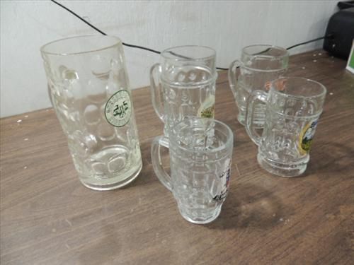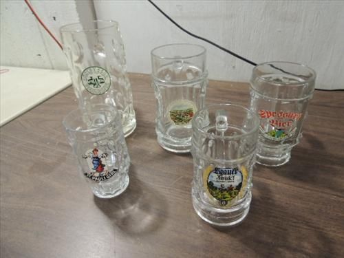 LOT 5 BREWERIANA OVERSIZE BEER MUGS: GUNZBERGER, EGAUER, ST PAULI GIRL, SPESSART, HOFHENFELS.  AS SHOWN. VIEW PICTURE FOR DETAIL.