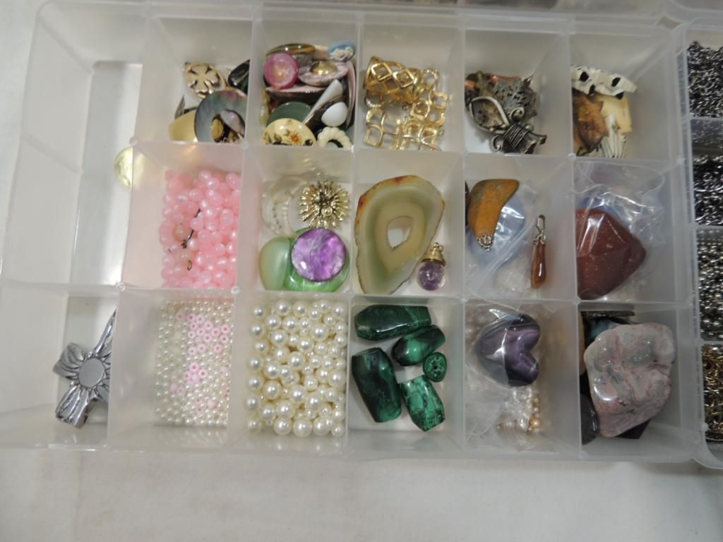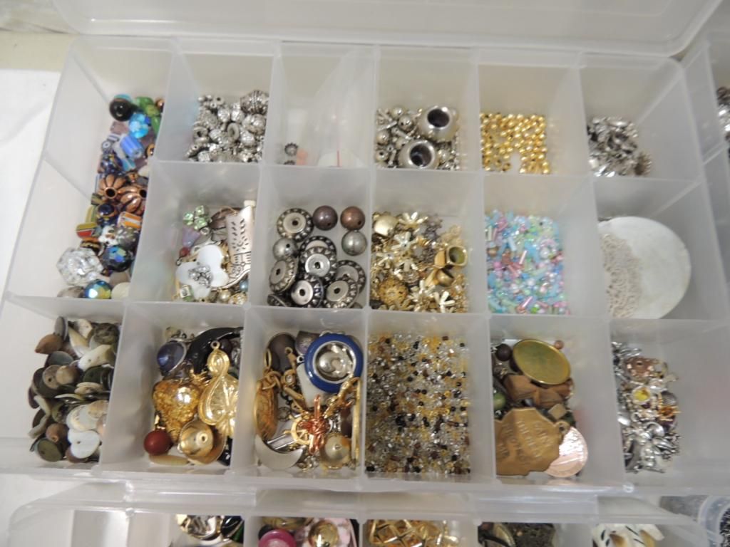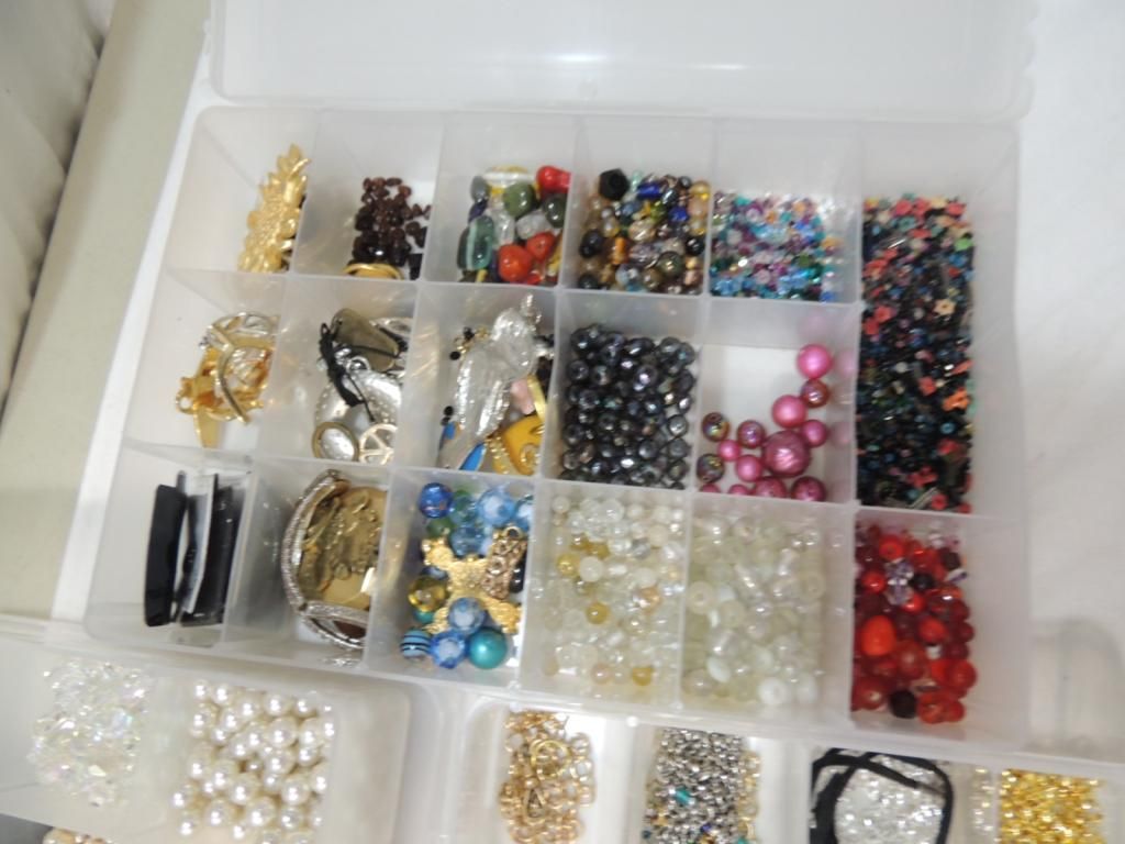 ORGANIZED SEPERATED CASES BEADS JEWELRY MAKING MATERIALS ASSORTED STYLES GLASS DECORATIVE PEARL CHARMS VARIOUS SIZES. AS SHOWN SEE PHOTO FOR MORE DETAILS.