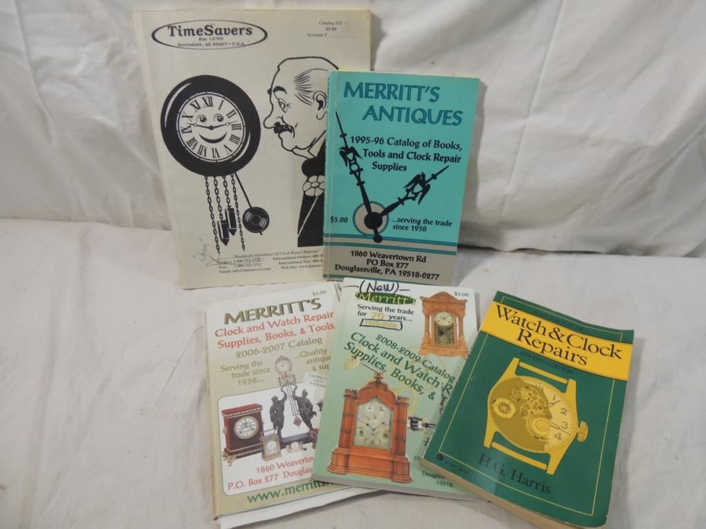 ASSORTED CLOCK REPAIR BOOKS, VINTAGE BOOKS, CLOCK REPAIR, ASSORTED BOOKS, COLLECTIBLES, CLOCK REPAIR, AS SHOWN SEE PHOTO FOR MORE DETAILS.