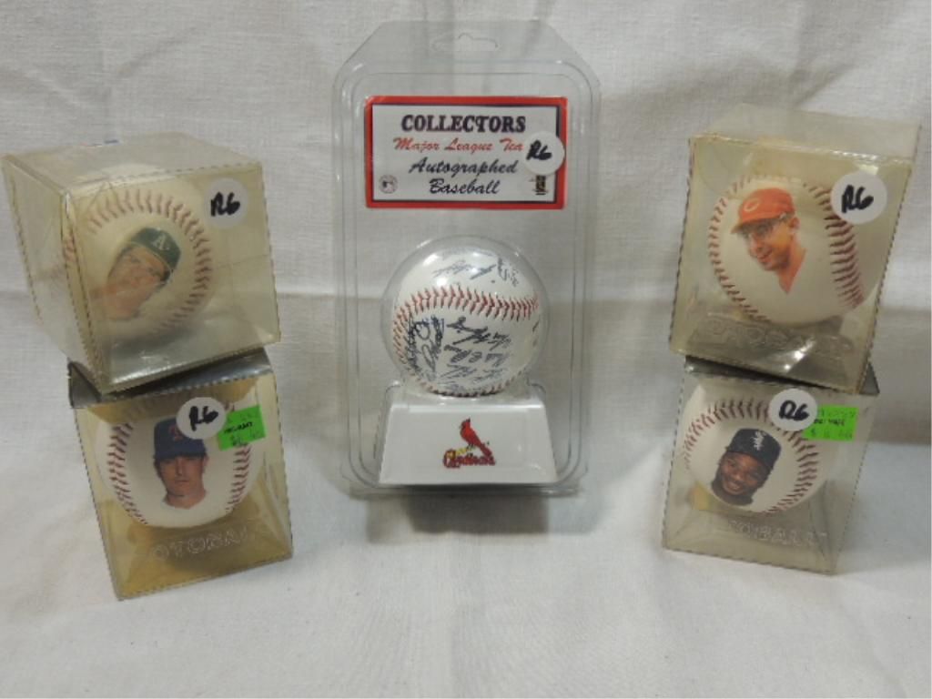 CARDINALS SIGNED BALL, FOUR COLLECTIBLE PLAYER BALLS.