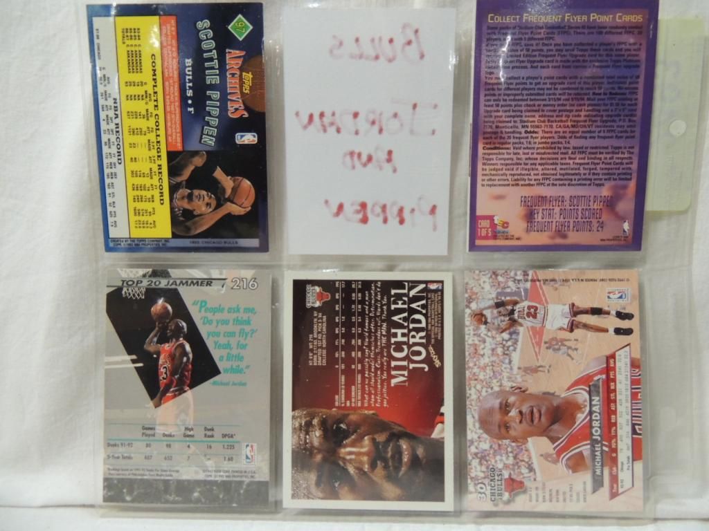CHICAGO BULLS BASKETBALL PLAYER CARDS. TRADING CARDS. COLLECTIBLE. IN GOOD CONDITION. PLASTIC PROTECTIVE SLEEVE . AS SHOWN SEE PHOTO FOR MORE DETAILS