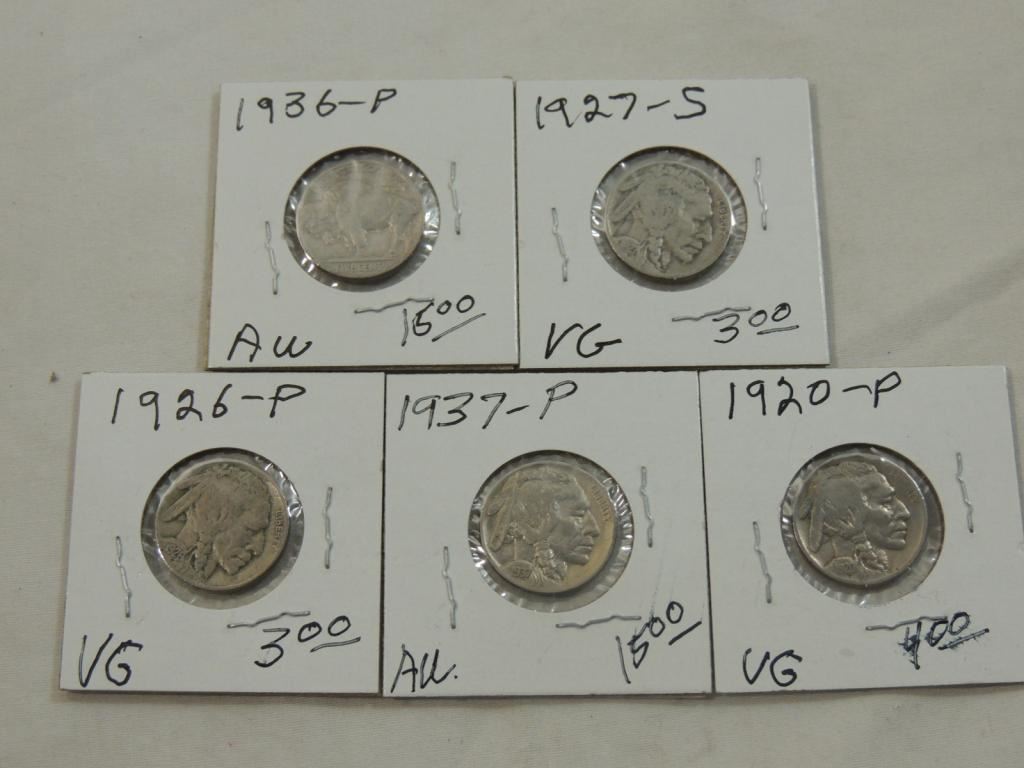 1937, 1920, 1936, 1927, 1926 COIN COLLECTIBLES, CURRENCY COLLECTIBLE, UNITED STATES COIN COLLECTIBLE, COIN COLLECTORS, AS SHOWN SEE PHOTO FOR MORE DETAILS.