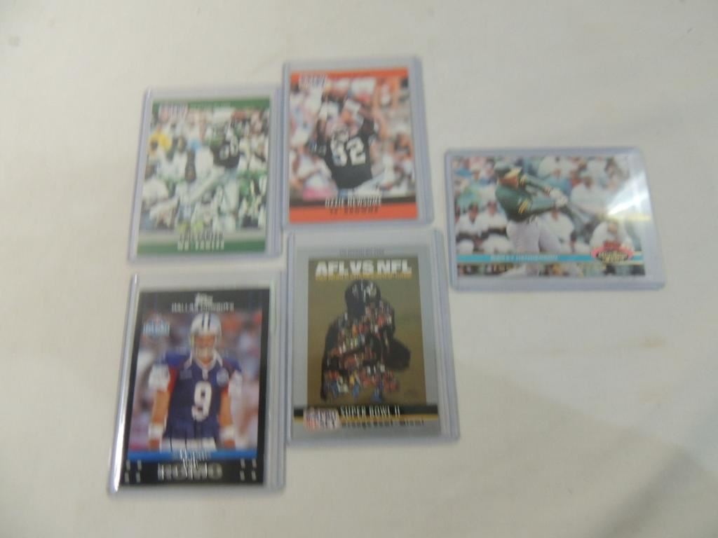 OZZIE NEWSOME, CRIS CARTER, RICKEY HENDERSON, SUPER BOWL 2, TONY ROMO FOOTBALL PLAYER CARDS. FOOTBALL TRADING CARDS. COLLECTIBLE. PROTECTIVE PLASTIC SLEEVE. SPORTS MEMORABILIA.. GOOD CONDITION. AS SHOWN SEE PHOTO FOR MORE DETAILS.