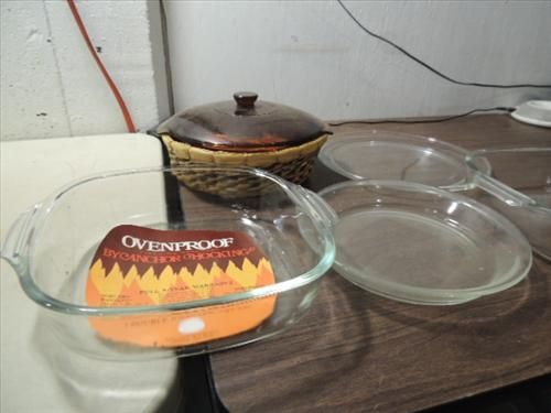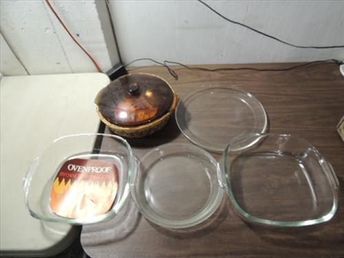 LOT 5 NEW PYREX COOKING CASSAROLE, PIE PLATE &