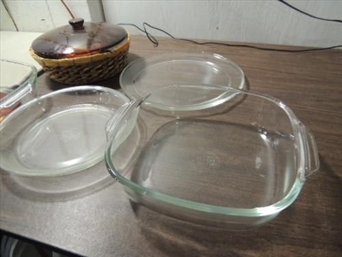 LOT 5 NEW PYREX COOKING CASSAROLE, PIE PLATE & PLATTER. AS SHOWN. VIEW PICTURE FOR DETAIL.