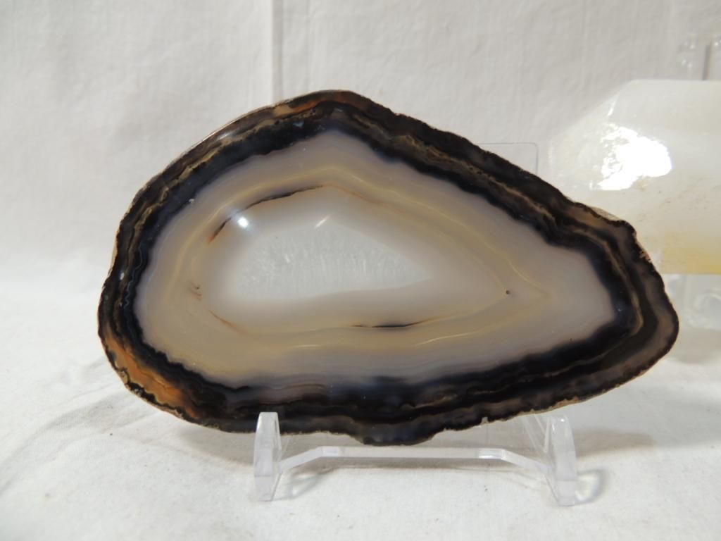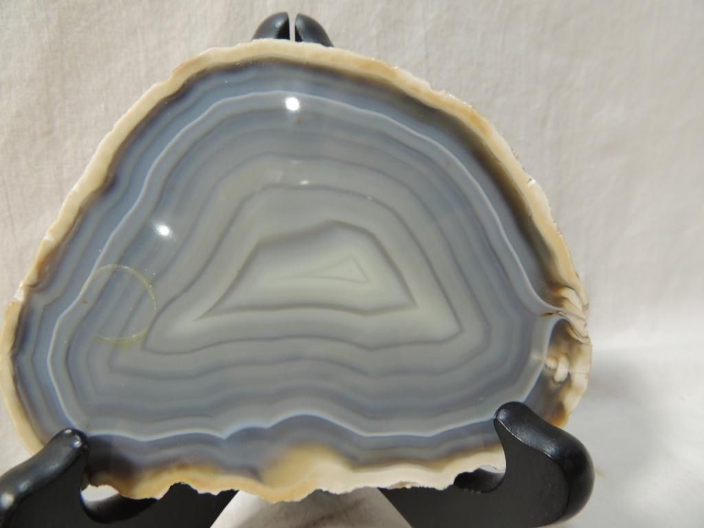 BLUE AGATE GEODE SLAB. POLISHED ROCK SLAB COASTER. GEMSTONE AS SHOWN. SEE PHOTO FOR MORE DETAILS.