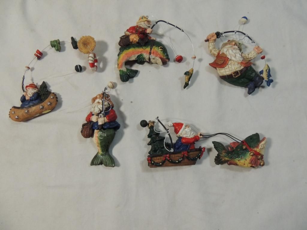 SANTA FISHING ORNAMENTS CARVED DETAILED AS SHOWN SEE PHOTO FOR MORE DETAILS