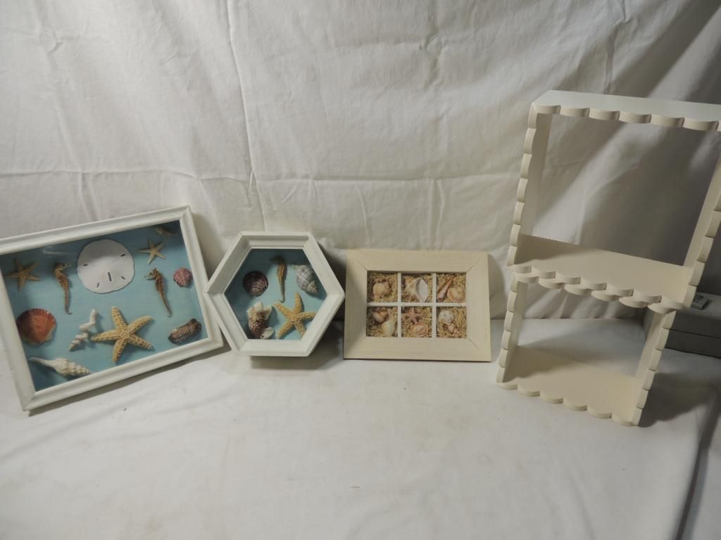 SEASHELL DISPLAYS SHADOWN BOXES. DECORATIVE DISPLAY SHELVES. AS SHOWN. SEE PHOTO FOR MORE DETAILS
