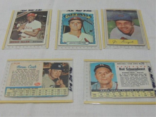 1954 BOWMAN #141 BASEBALL CARD JOE GARAGIOLA. 1966 TOPPS #80 BASEBALL PLAYER CARD RICHIE ALLEN. 1961 POST CEREAL #111 BASEBALL CARD RED SCHOENDIEST. 1962 POST CEREAL #14 BASEBALL CARD NORM CASH. 1972 TOPPS #420