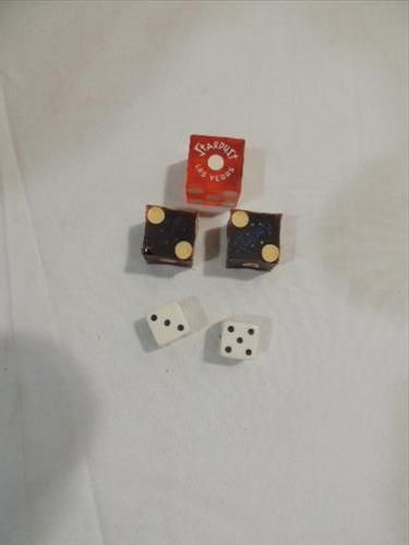 LOT 5 VINTAGE GAMING DICE (3) LAS VEGAS STAR DUST. AS SHOWN. VIEW PICTURE FOR DETAIL.
