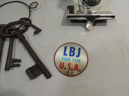 LOT 5 VINTAGE ITEMS: POLITICAL BUTTON VARIVUE LBJ,