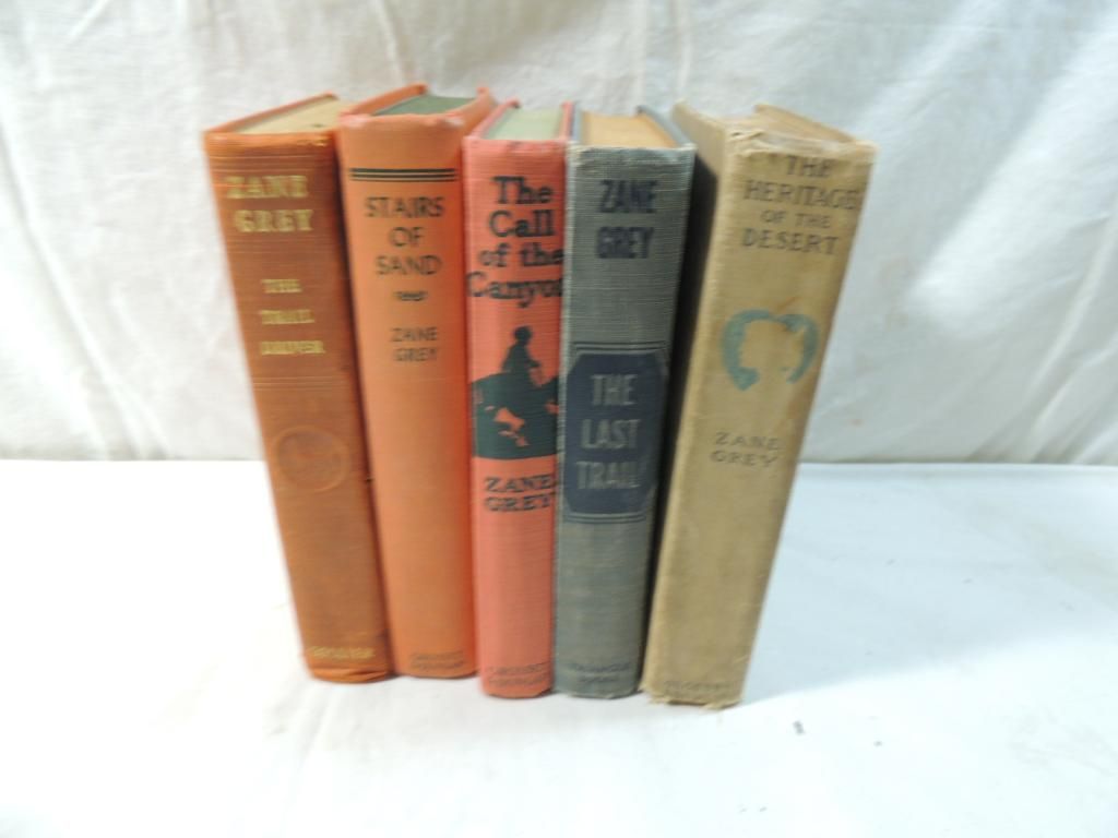 HARD COVER BOOKS VINTAGE BOOKS ZANE GRAY BOOKS AS SHOWN SEE PHOTO FOR MORE DETAILS.