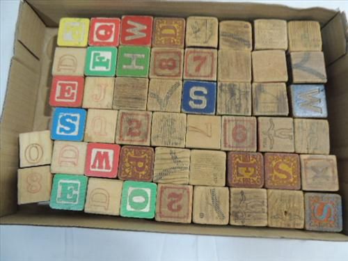 LOT 50 VINTAGE CHILDS BUILDING BLOCKS (35 OLDER STYLE). AS SHOWN. VIEW PICTURE FOR DETAIL.