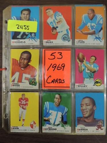 LOT 53 ASSORTED 1969 TOPPS FOOTBALL PLAYER CARDS. AS SHOWN. VIEW PICTURE FOR DETAIL.