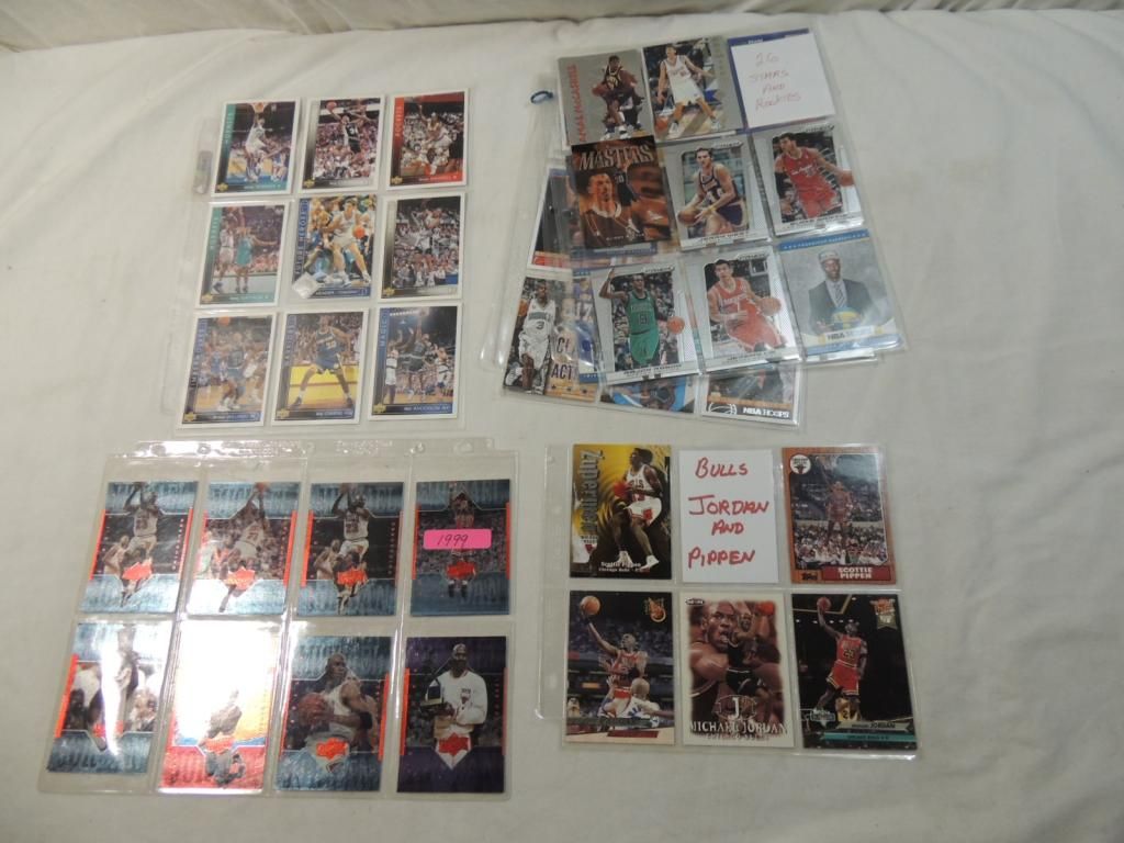 CHICAGO BULLS BASKETBALL PLAYER CARDS. JORDAN TRADING CARDS. COLLECTIBLE. IN GOOD CONDITION. PLASTIC PROTECTIVE SLEEVE . AS SHOWN SEE PHOTO FOR MORE DETAILS