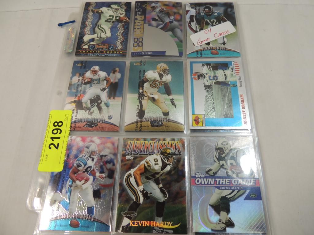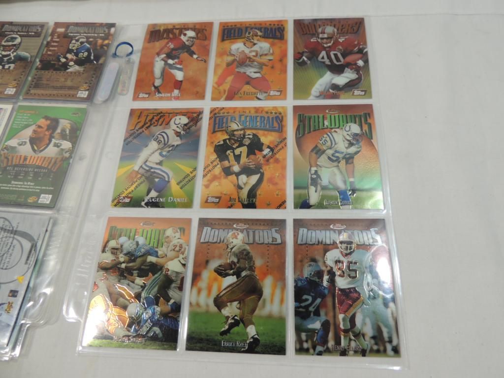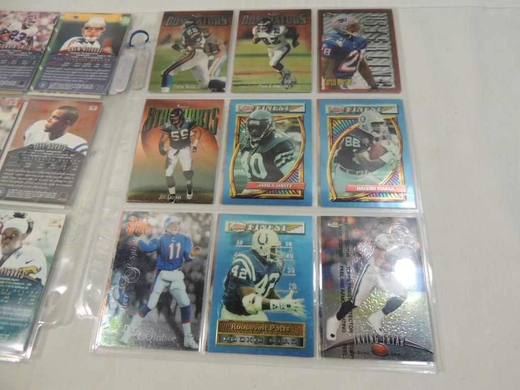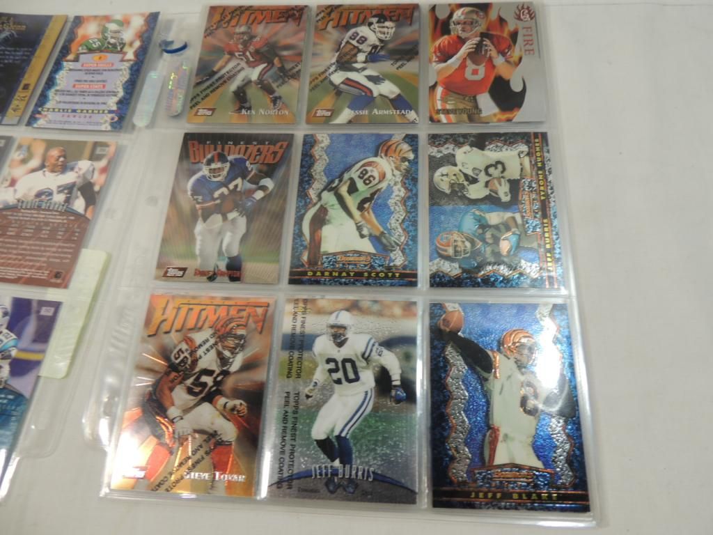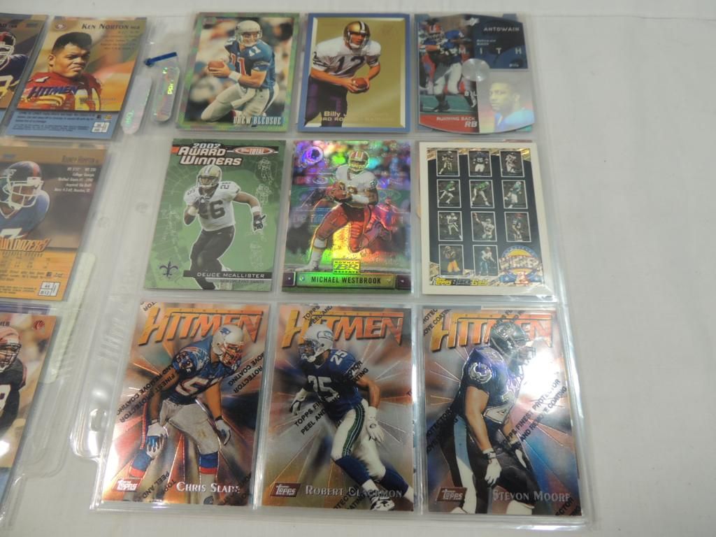 FOOTBALL PLAYER CARDS. MIXED MAKERS. AND MIXED YEARS, IN GOOD CONDITION. IN BINDER SHEET. AS SHOWN. SEE PHOTO FOR MORE DETAILS.
