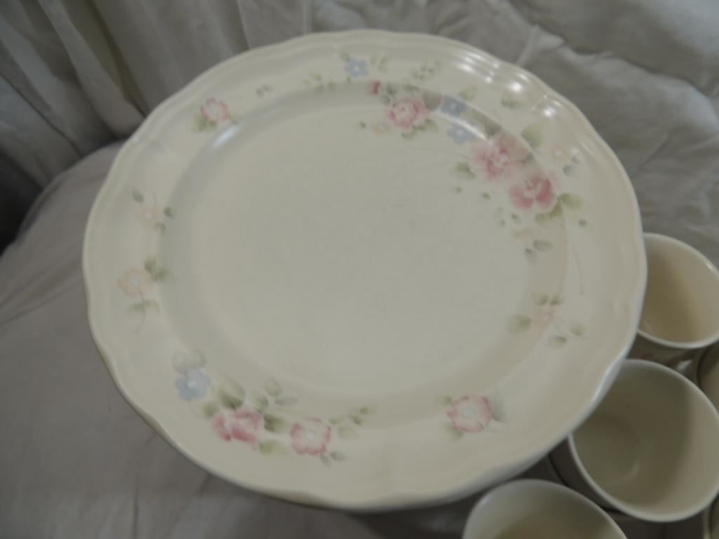 19 10" DINNER PLATES, 10 7" DESSERT , 14 CUPS, 12 SAUCERS, PFALTZGRAFF COLLECTIBLE DINNERWARE, DESIGNER DINNERWARE, DECORATIVE, TOP OF THE LINE, DINNERWARE SET, WEDDING SET, AS SHOWN SEE PHOTO FOR MORE DETAILS.