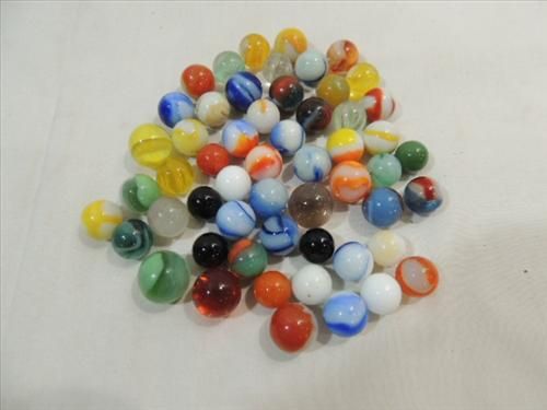 LOT 55 VINTAGE MARBLES: ALL REDS, CORK SCREWS, CAT EYES, & COMMONS. AS SHOWN. VIEW PICTURE FOR DETAIL.