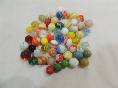 LOT 55 VINTAGE MARBLES: CLEARIES, CAT EYES, & COMMONS. AS SHOWN. VIEW PICTURE FOR DETAIL.