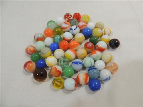 LOT 55 VINTAGE MARBLES: VITROS, SHOOTER, CORK SCREWS, CAT EYES & COMMONS. AS SHOWN. VIEW PICTURE FOR DETAIL.