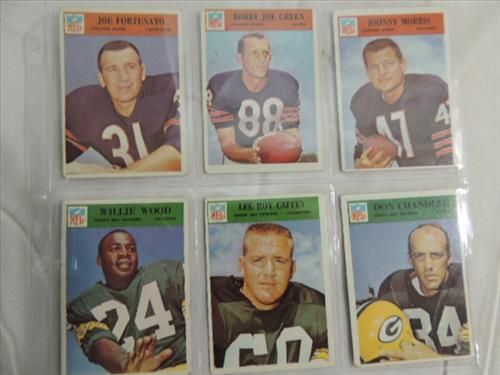 LOT 6 1966 PHILADELPHIA FOOTBALL CARD: 3 EACH BEARS & PACKERS. AS SHOWN. VIEW PICTURE FOR DETAIL.