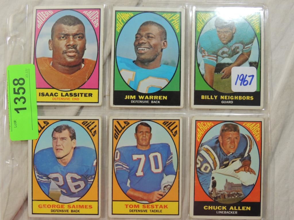 ISAAC LASSITER, JIM WARREN, BILLY NEIGHBORS, GEORGE SAIMES, TOM SESTAK, CHUCK ALLEN FOOTBALL PLAYER CARDS. TRADING CARDS. COLLECTIBLE. FOOTBALL MEMORABILIA. GOOD CONDITION AS SHOWN. SEE PHOTO FOR MORE DETAILS.