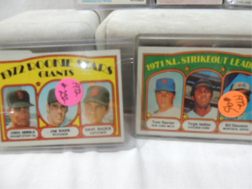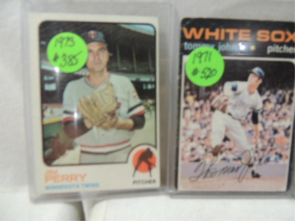 1971 TOMMY JOHN #520, 1972 ROOKIE STARS #141, 1972 STRIKEOUT LEADERS #95, 1972 ROOKIE STARS #232, 1973 ROLLIE FINGERS #84, 1973 JIM PERRY #385. BASEBALL PLAYER CARD. TRADING CARD. AS SHOWN. SEE PHOTO FOR MORE DETAILS.