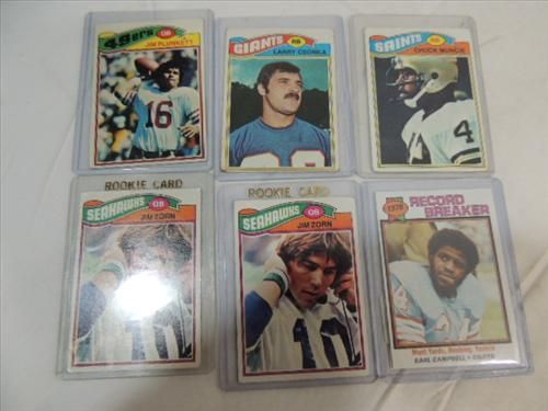 LOT 6 1976 TOPPS FOOTBALL CARDS: JIM PLUNKETT, LARRY CSONKA, CHUCK MUNCIE, JIM ZORN, EARL CAMPBELL. AS SHOWN. VIEW PICTURE FOR DETAIL.