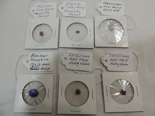 LOT 6 (2) RUBY, (2) RHODOLITE, 1 OPAL & 1 BLUE STAR SAPPHIRE STONES. ASSORTED SIZES, AS SHOWN. VIEW PICTURE FOR DETAIL.