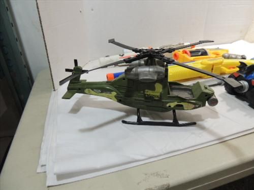 LOT 6 (3) NERF DART GUNS, PLASTIC MILITARY HELICOP
