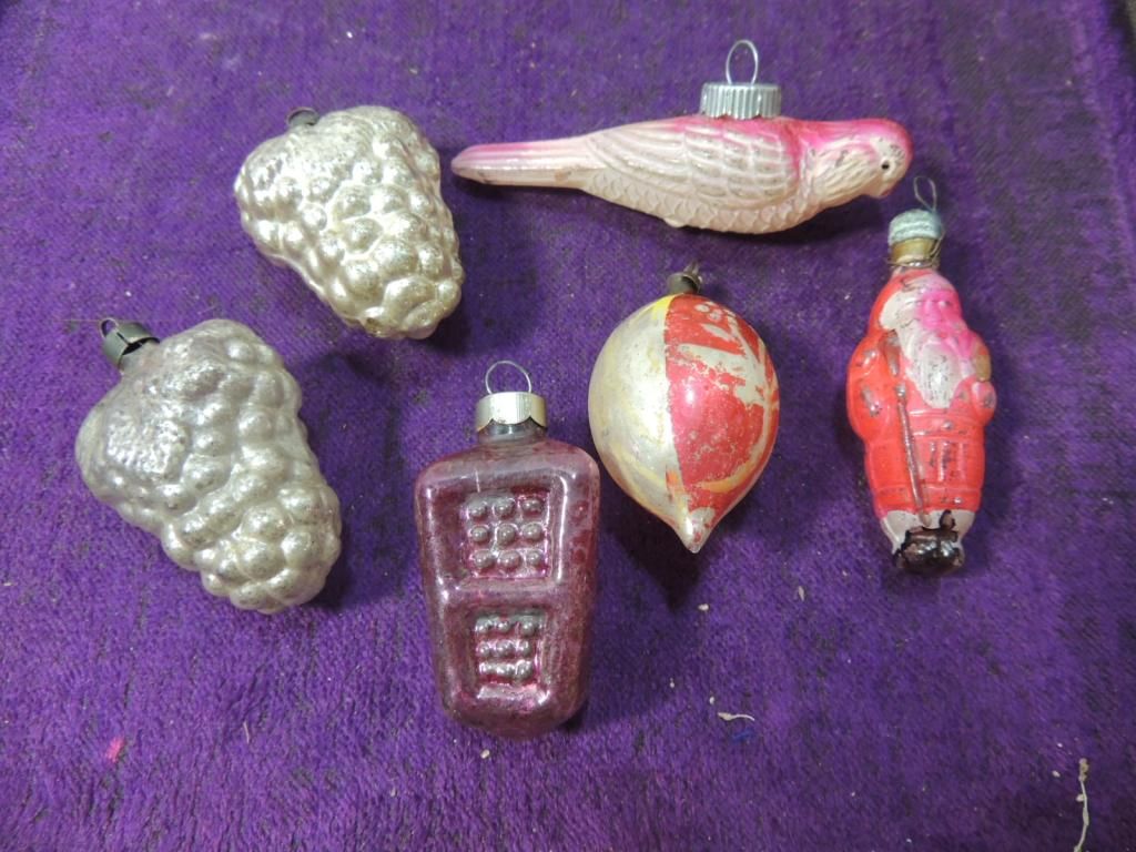 BIRD, SANTA, BULB, GRAPES. AS SHOWN. VINTAGE ANTIQUE CHRISTMAS ORNAMENTS. AS SHOWN. SEE PHOTO FOR MORE DETAILS
