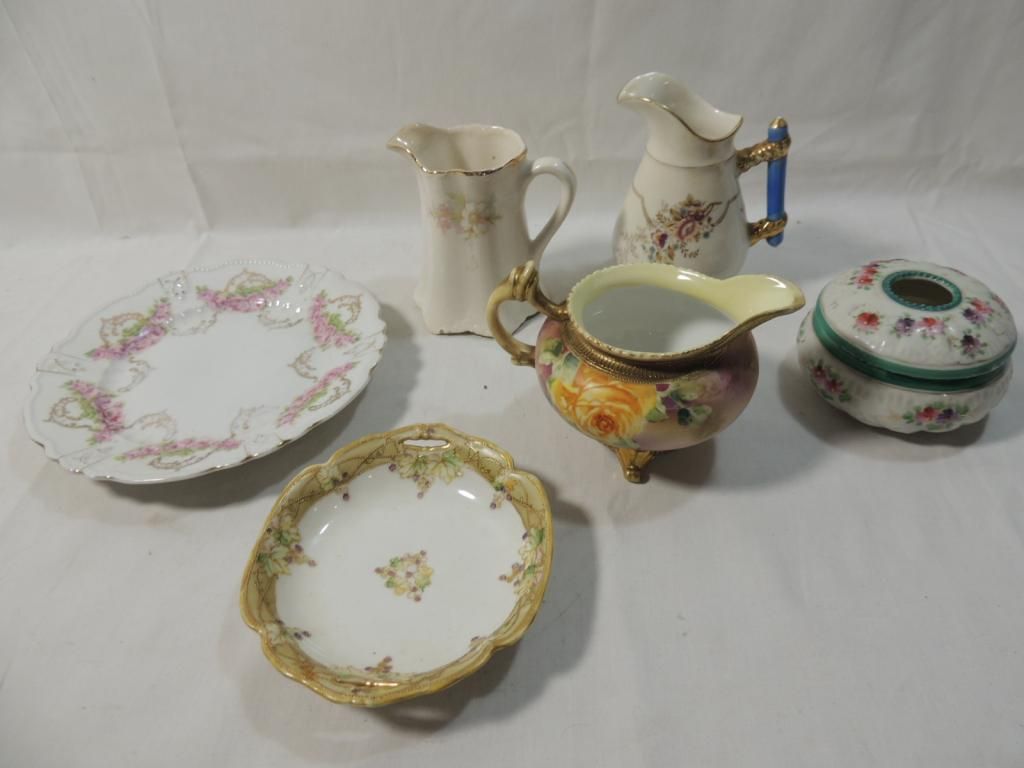 DECORATIVE PLATES AND CREAMERS. MANY HAND PAINTED. AS SHOWN. SEE PHOTO FOR MORE DETAILS.