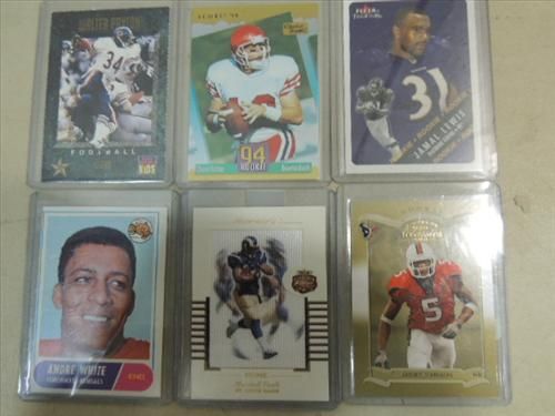 LOT 6 ASSORTED FOOTBAL PLAYER CARDS: PAYTON, DILFER,LEWIS, WHITE, FAULK, JOHNSON. AS SHOWN. VIEW PICTURE FOR DETAIL.