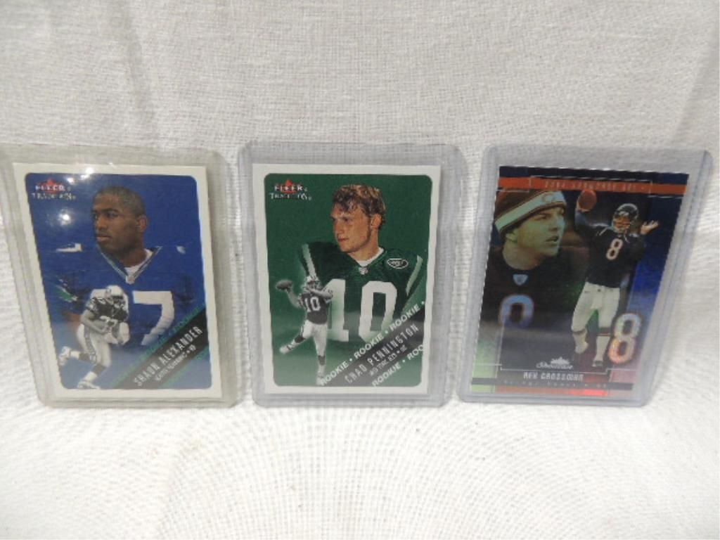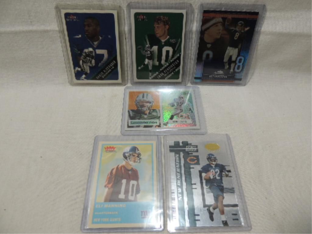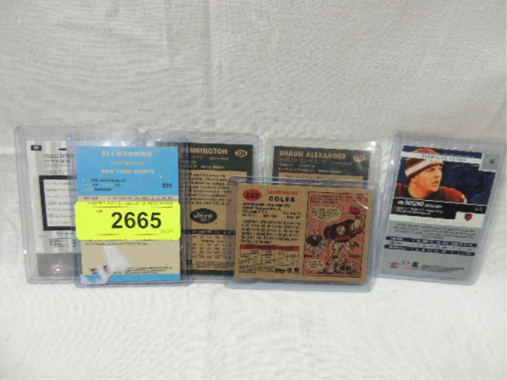 LOT 6 ASSORTED FOOTBALL PLAYER CARDS: GROSSMAN, BENSON, COLES, ALEXANDER, PENNINGTON, MANNING. AS SHOWN. VIEW PICTURE FOR DETAIL.