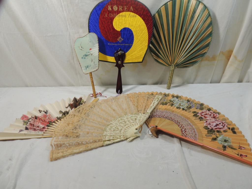 DECORATIVE FANS, HAND FANS, ASIAN FANS, DESIGNER FANS, AS SHOWN SEE PHOTO FOR MORE DETAILS.