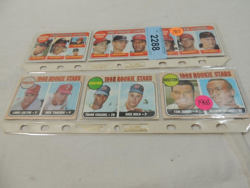 1968 ROOKIE CARDS LARRY COLTON, DICK THOENEN, FRANK COGGINS, DICK NOLD, TOM DUKES, ALONZO HARRIS BASEBALL PLAYER CARDS. TRADING CARDS. COLLECTIBLE. BASEBALL MEMORABILIA. GOOD CONDITION AS SHOWN. SEE PHOTO FOR MORE DETAILS.