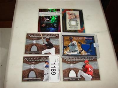LOT OF 6 BASEBALL JERSEY CARDS INCLUDING PLAYERS: MAGGLIO ORDONEZ, AARON ROWAND, IAN KINSLER, CARLOS DELGADO, CLAY BUCHHOLZ, AND SAMMY SOSA. AS SHOWN. VIEW PICTURE FOR DETAIL.