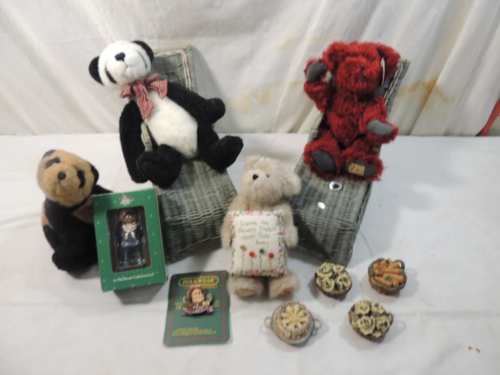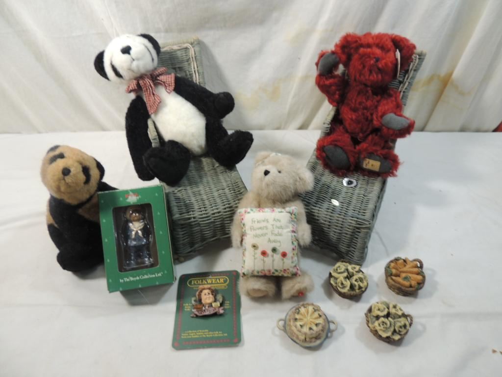 BOYDS BEARS, BOYDS BEARS & FRIENDS, COLLECTIBLE BEARS, PLUSH BEARS, FIGURES, FRIENDS BEARS, WICKER CHAIRS, HOLIDAY ORNIMATE, AS SHOWN SEE PHOTO FOR MORE DETAILS.