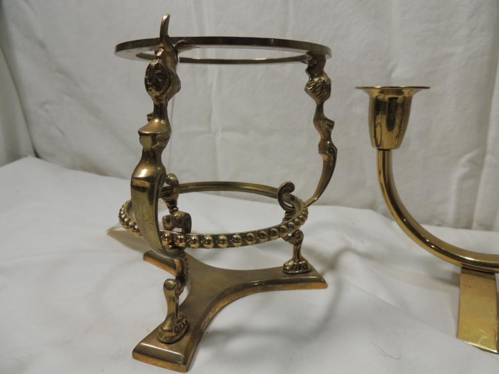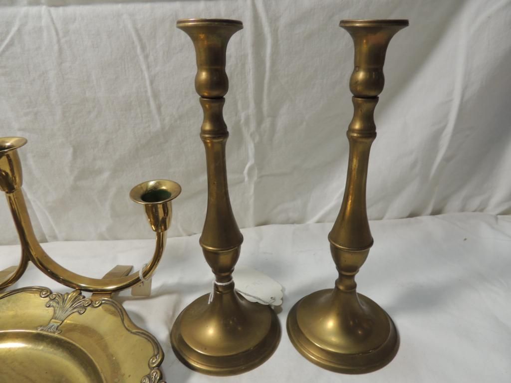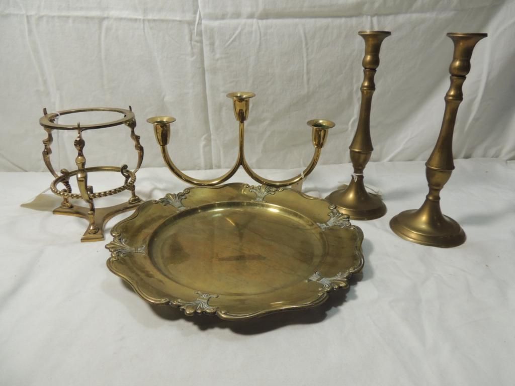 PAIR CANDLE HOLDERS, CANDLEABRA, DECORATIVE STAND, DECORATIVE TRAY. AS SHOWN. SEE PHOTO FOR MORE DETAILS.