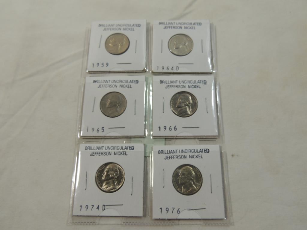 LOT 6 BRILLIANT UNCIRCULATED JEFFERSON NICKEL
