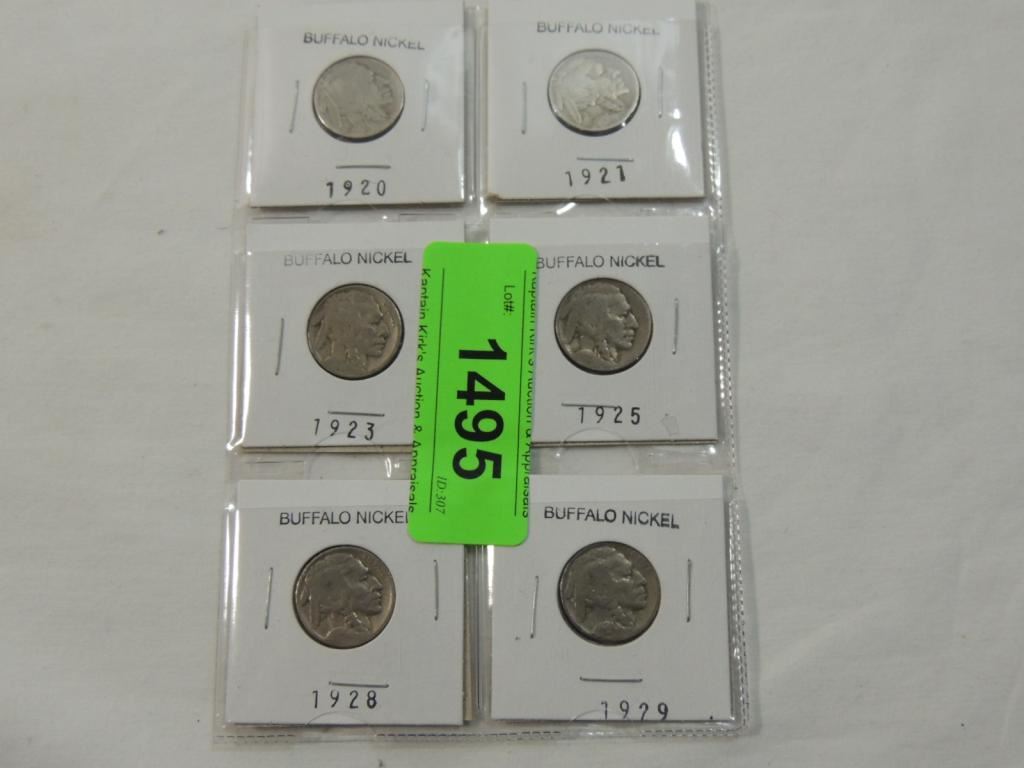 VARIOUS 1920s BUFFALO NICKELS GOOD CONDITION US CURRENCY COIN COLLECTIBLE. AS SHOWN SEE PHOTO FOR MORE DETAILS.