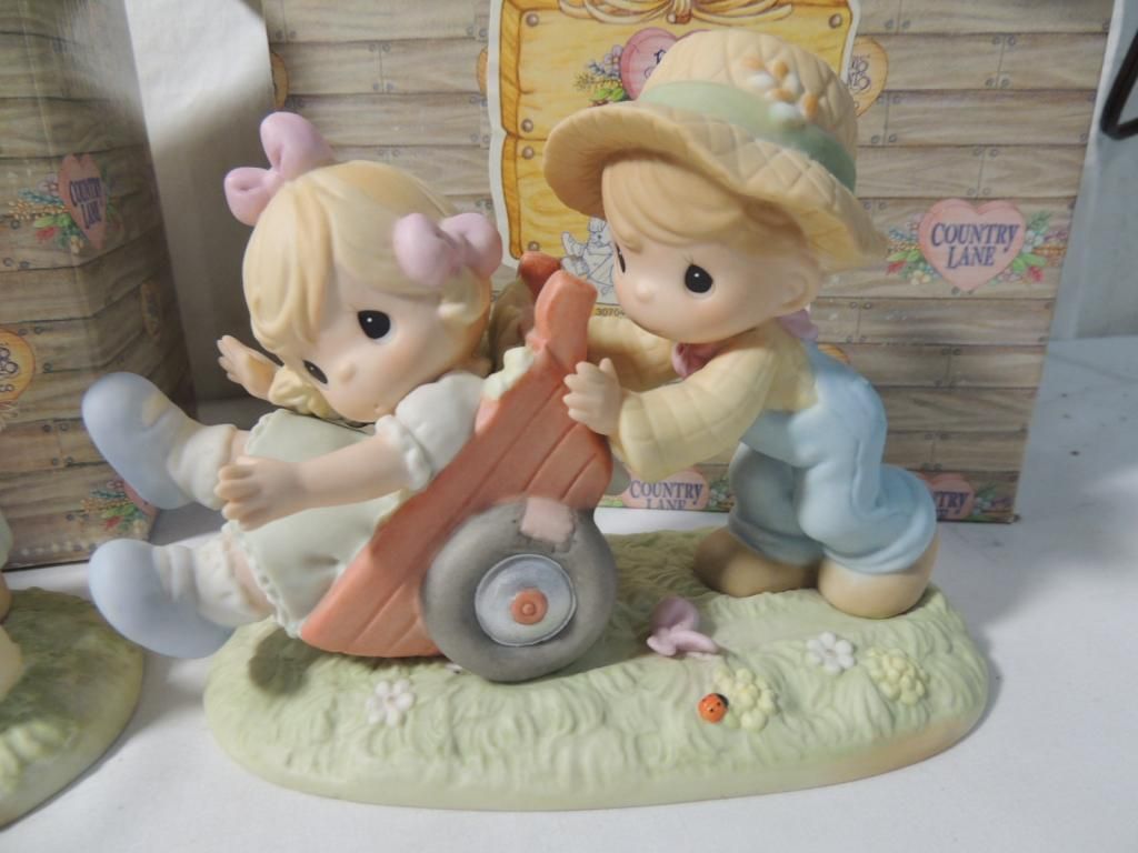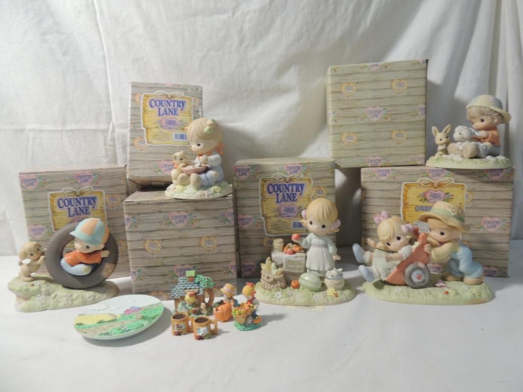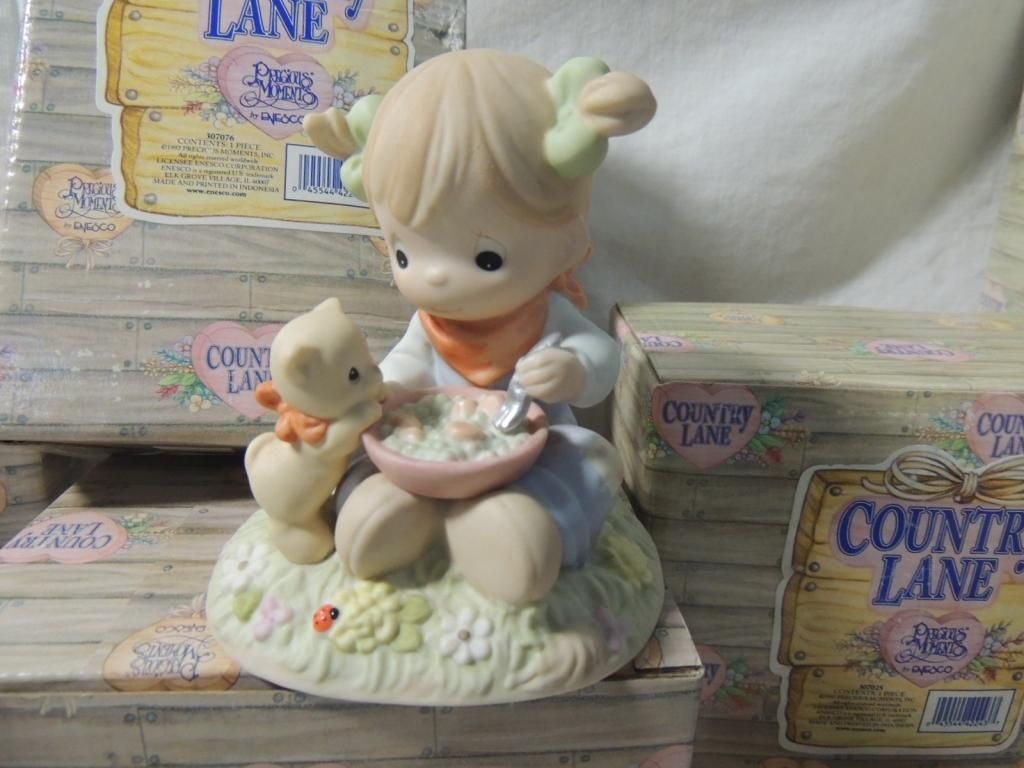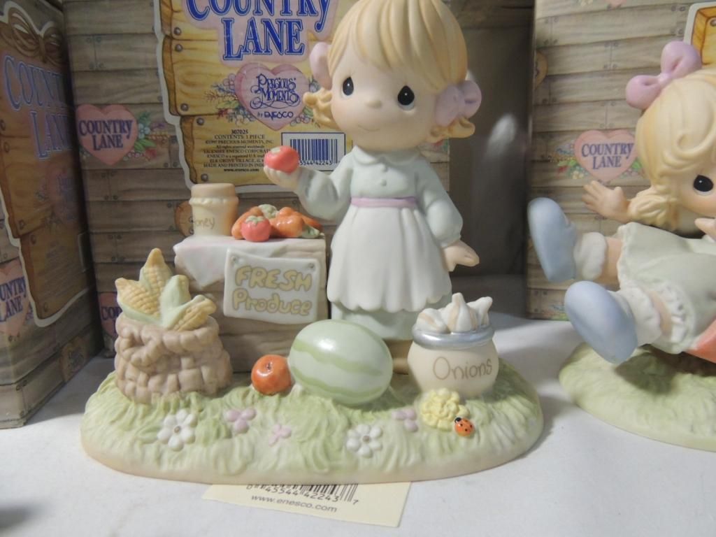 NOBODY LIKES TO BE DUMPED, MINI TEA SET, OH TASTE AND SEE THAT THE LORD IS GOOD. PRECIOUS MOMENTS COUNTRY LANE BY ENESCO. ASSORTED FIGURINES. COLLECTIBLE. IN BOXES. HIGHLY COLLECTIBLE. AS SHOWN SEE PHOTO FOR MORE DETAILS.