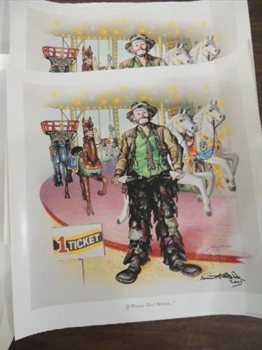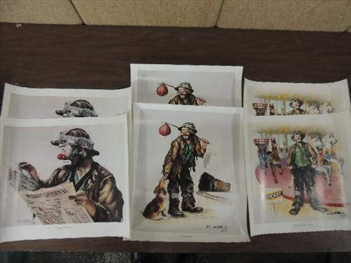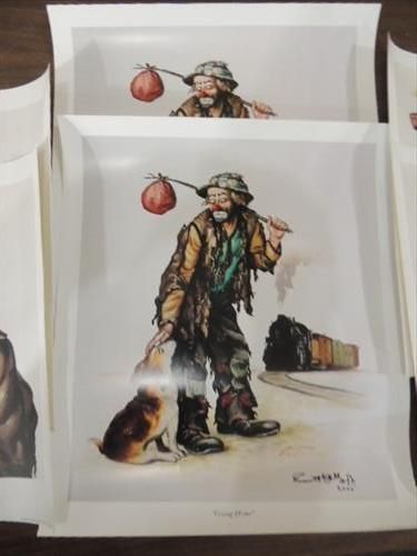 LOT 6 1994 EMMET KELLY JR HOBO CLOWN POSTERS AUTOGRAPH. 3 VERSIONS 2 OF EACH. ALL AUTOGRAPHED BY KELLY. NO COA. AS SHOWN. VIEW PICTURE FOR DETAIL. PLEASE BE ADVISED, AND INFORMED REGARDING SIGNATURES OR AUTOGRAPHS THAT WE SELL AT AUCTION: WE ARE NOT AUTHENTICATORS, AND WE DO NOT AUTHENTICATE, OR VALIDATE ANY AUTOGRAPHS OR SIGNATURES THAT WE OFFER AT AUCTION. SOME AUTOGRAPHS OR SIGNATURES MAY COME WITH AN AUTHENTICATION FROM ANY ONE OF LITERALLY HUNDREDS OF AUTHENTICATORS ACROSS THE COUNTRY, AND AROUND THE WORLD. WE DO NOT ENDORSE ANY AUTHENTICATOR, NOR DO WE GUARANTEE THAT ANY AUTOGRAPH OR SIGNATURE IS AUTHENTIC, OR THAT IT WILL PASS AUTHENTICATION BY ANY AUTHENTICATOR. ALL AUTOGRAPHS OR SIGNATURES ARE SOLD