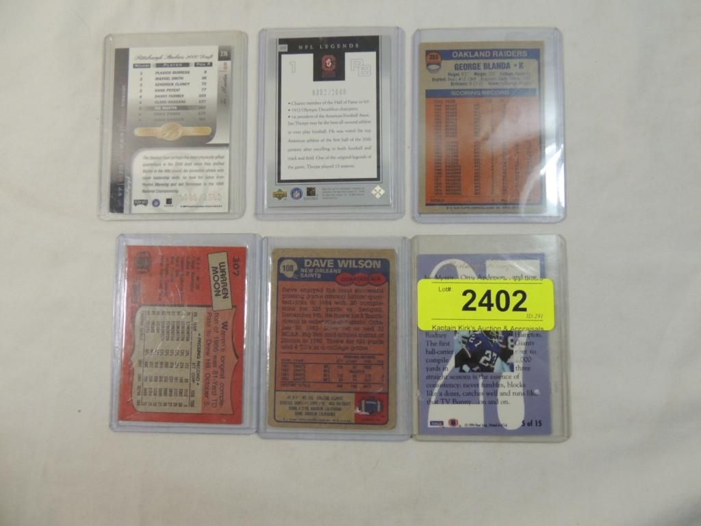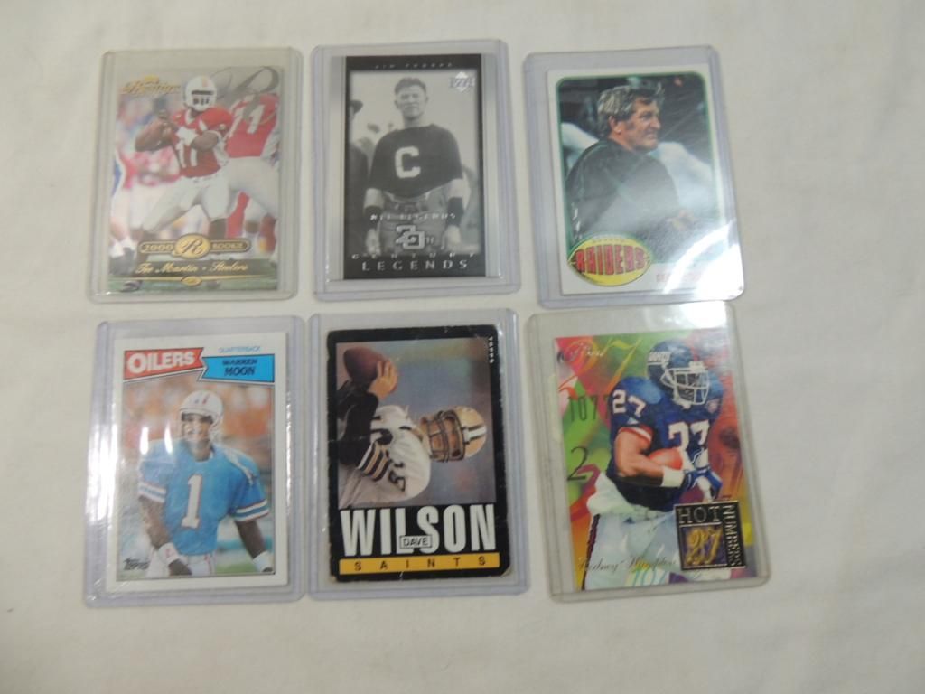 6 FOOTBALL CARDS. OLYMPIAC JIM THORPE, RAIDERS GEORGE BLANDA, OILERS WARREN MOON, SAINTS DAVE WILSON, GIANTS RODNEY HAMPTON, VOLUNTEERS TEE MARTIN