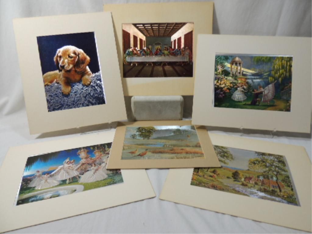 LOT 6 FOIL RELIEF PRINT. LITHOGRAPH. MATTED ART AS SHOWN. SEE PHOTO FOR MORE DETAILS.