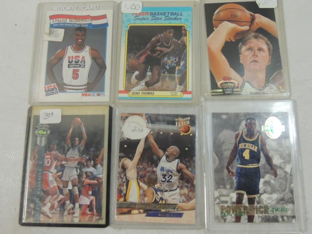 DAVID ROBINSON, ALONZO MOURNING, ISIAH THOMAS, SHAQUILLE ONEAL, LARRY BIRD, CHRIS WEBBER, BASKETBALL PLAYER CARD. BASKETBALL TRADING CARDS. COLLECTIBLE. GOOD CONDITION. GREAT CONDITION. AS SHOWN. SEE PHOTO FOR MORE DETAILS.