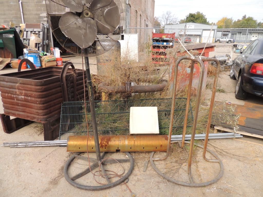 SCRAP METAL, GRATE, METAL FAN, SCRAP MISC ASSORTED SCRAP ITEMS AS SHOWN SEE PHOTO FOR MORE DETAILS.