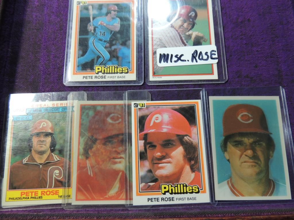 PETE ROSE BASEBALL PLAYER CARDS. ASSORTED BASEBALL PLAYER CARDS. MIXED MAKERS AND DATES. AS SHOWN. SEE PHOTO FOR MORE DETAILS
